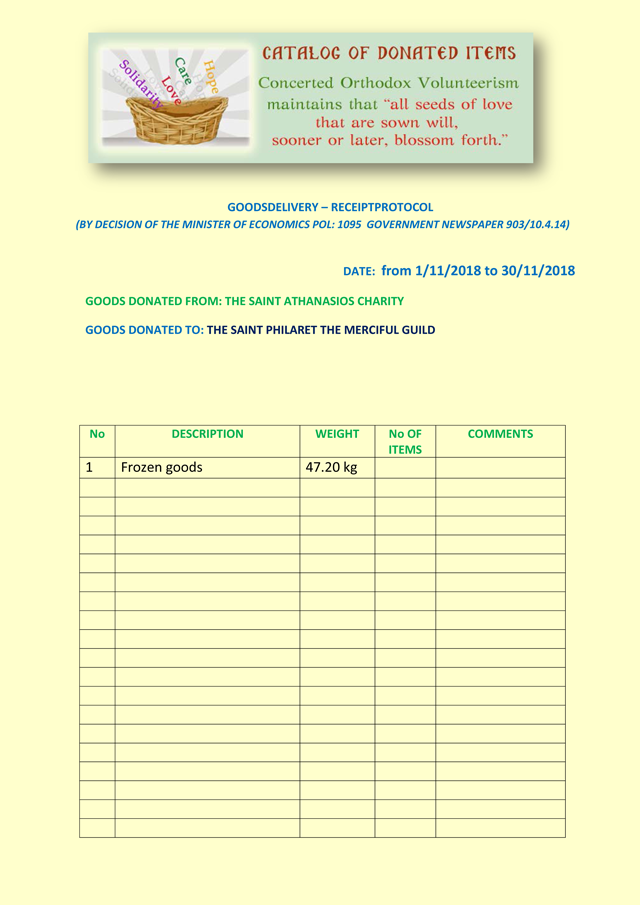 » Gratitude and Transparecy » Donations to the Guild » Compilation of the monthly donations from the St. Athanasios Charity from 1.11.2018 to 30.11.2018