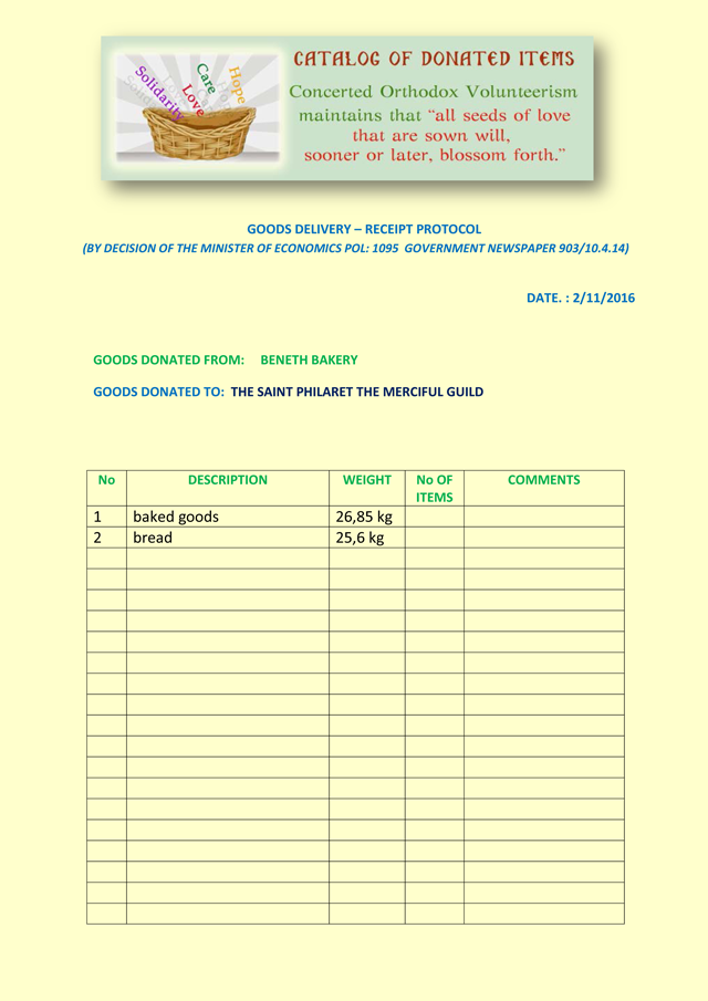 Donation of baked goods from the Beneth Bakery 2.11.2016