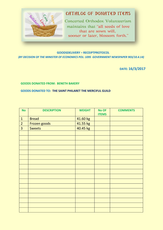Donation of goods from BENETH BAKERY, 16.3.2107