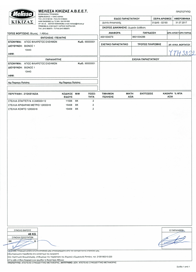» Gratitude and Transparecy » Donations to the Guild » Donation of pasta from Melissa Kikizas A.B.E.E., 31-7-2017