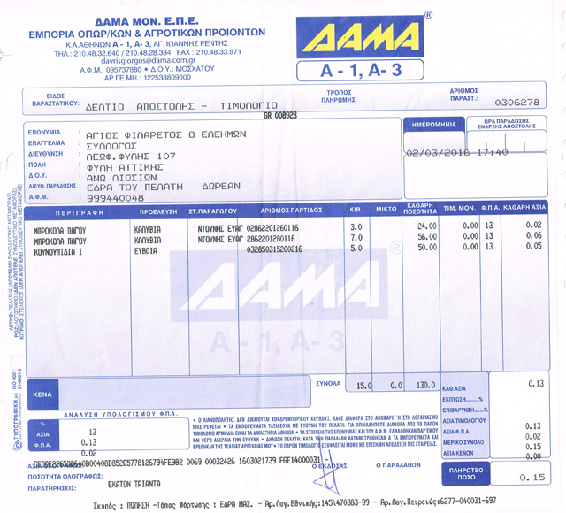 Compilation of the monthly donations from AB Basilopoulos Supermarket from 1.3.2020 to 31.3.2020