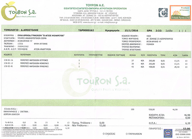 Sponsorship of fruits and vegetables by “TOURON S.A.”